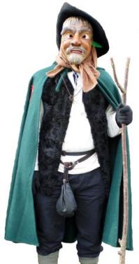 Über die Zeit, als der Lichtenstein den Herzögen nur noch als Jagdschloss diente, steht folgendes geschrieben: Im 30-jährigem Krieg stellten sich die Wölfe im Echaztal haufenweise ein. Sollten die Leute unterm Lichtenstein nicht von ihnen verzehrt werden, so sollte man den Forstknecht nicht entbehren. Auch wir die Lichtensteiner Schlosswölfe wollen nicht mehr ohne unseren Forstknecht sein, der seit der Fasnet 2008 mit dabei ist. Unser Forstknecht trägt eine handgeschnitzte Lindenholzmaske. Sein Häs besteht aus einem einfachen Baumwollhemd und einer dunklen Hose. Eine Weste aus schwarzem Lammfell, ein Wollumhang und ein tief ins Gesicht gezogener schwarzer Hut schützen den Forstknecht vor Wind und Wetter. |